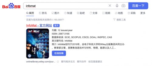 此次合作,百度学术为Wiley旗下刊提供“官方认证标识”助力期刊品牌传播,提升中国学者检索质量;同时,增加“在线投稿”按钮,以满足科研人员“一键投稿”的诉求。