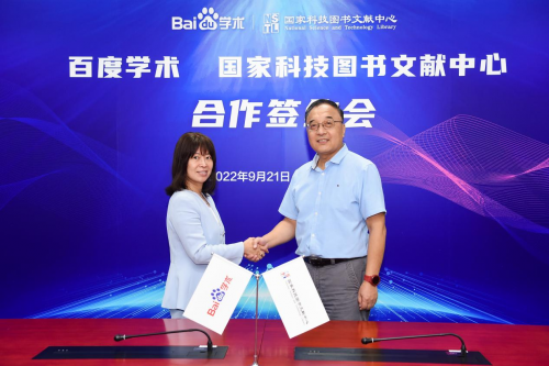 2022年9月21日,百度学术与国家科技图书文献中心(以下简称“NSTL”)达成合作协议,双方将在学术资源的融合、传播、共享和知识服务等方面,共同建立专业、优质的学术科研生态,共同为我国学者及科研人员提供更加数字化、智能化、便捷化的国内外学术资源服务。签约会上,双方围绕科技信息资源建设和服务进行了深入的交流,充分肯定了此次合作的意义。